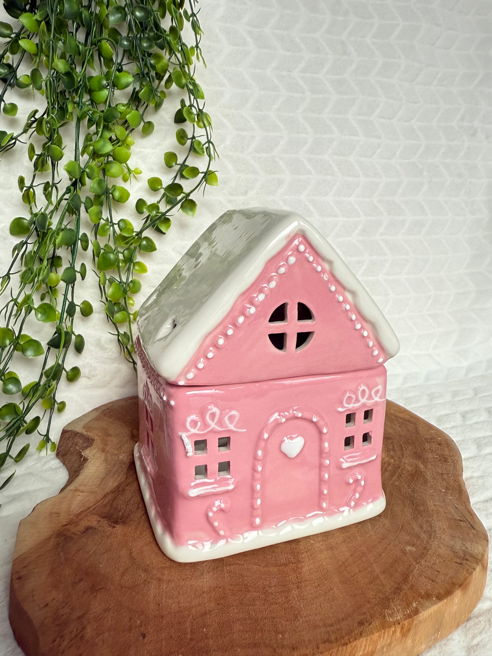 - Modèle Maison rose en pain d’épices : H16cm X W12.5cm X D12.5cm