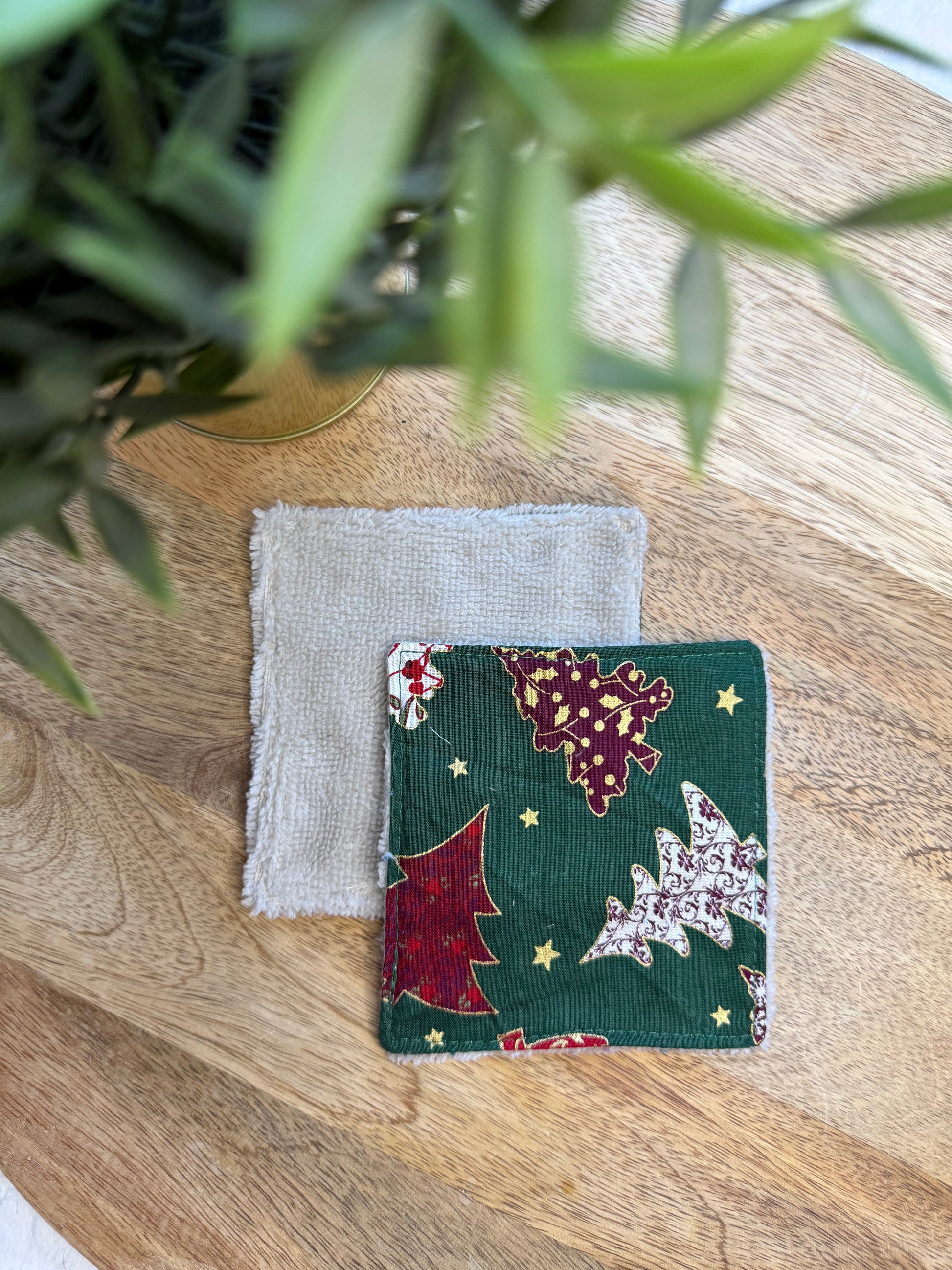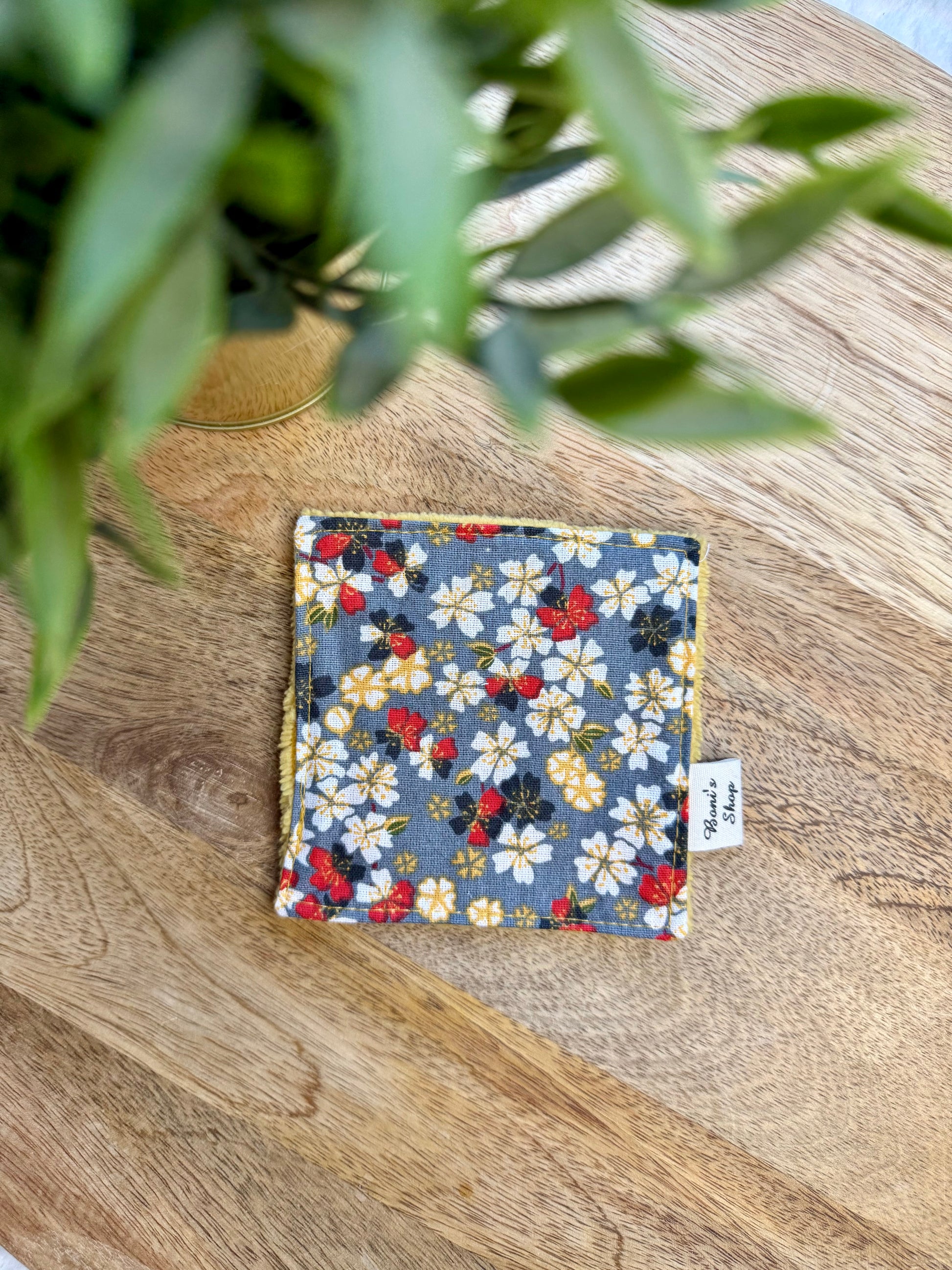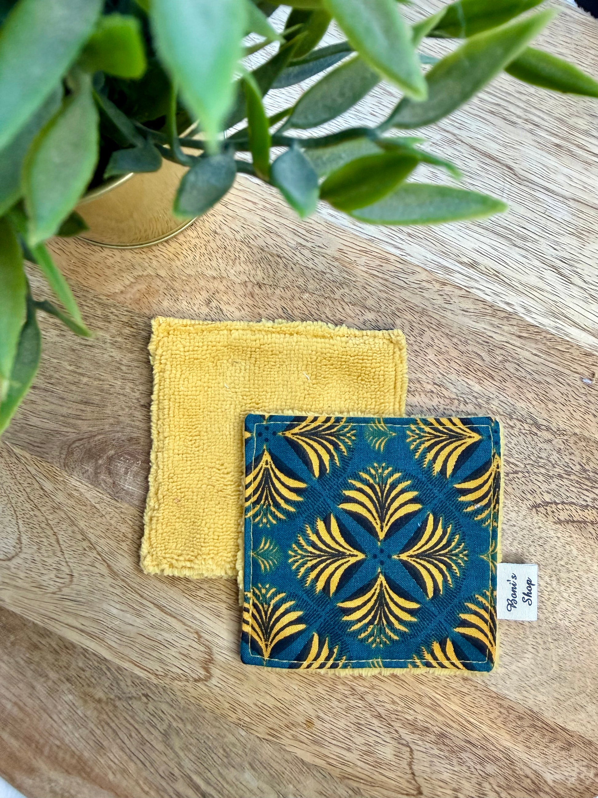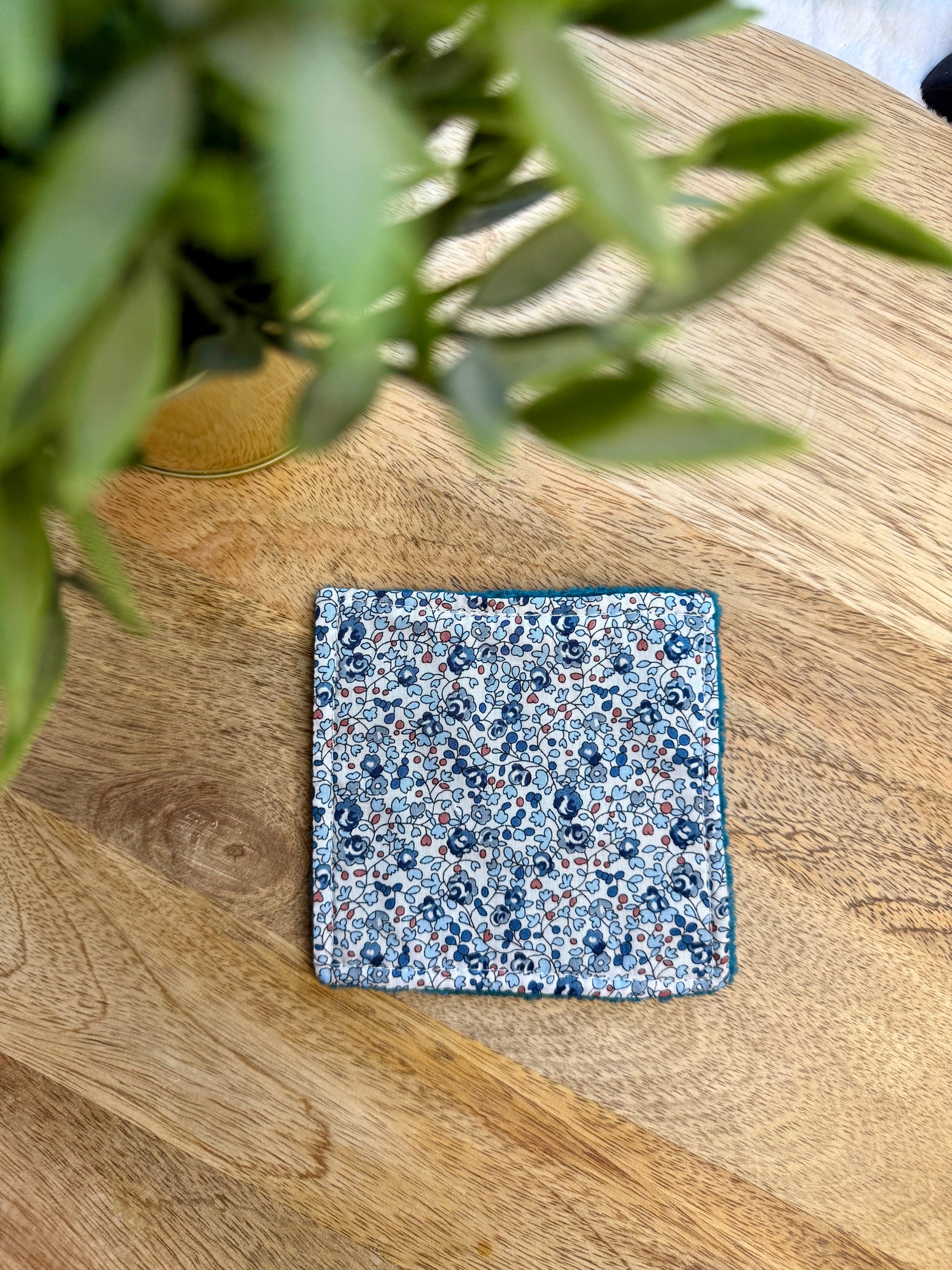 Les lingettes mesurent 11 cm x 11 cm environ. Elles sont constituées d'une face en tissu coton OEKO-TEX et d'une face en éponge bambou assortie au tissu coton.