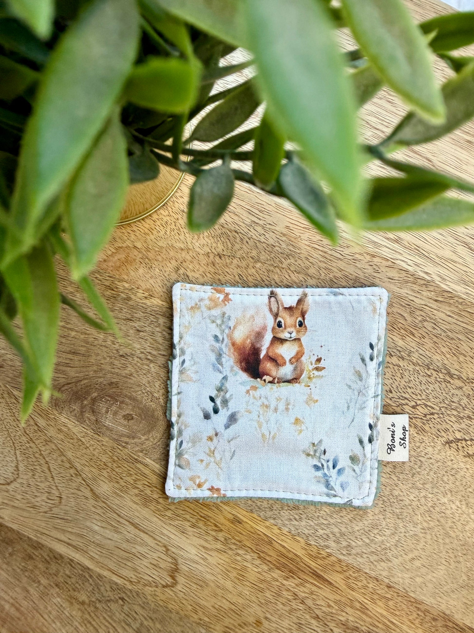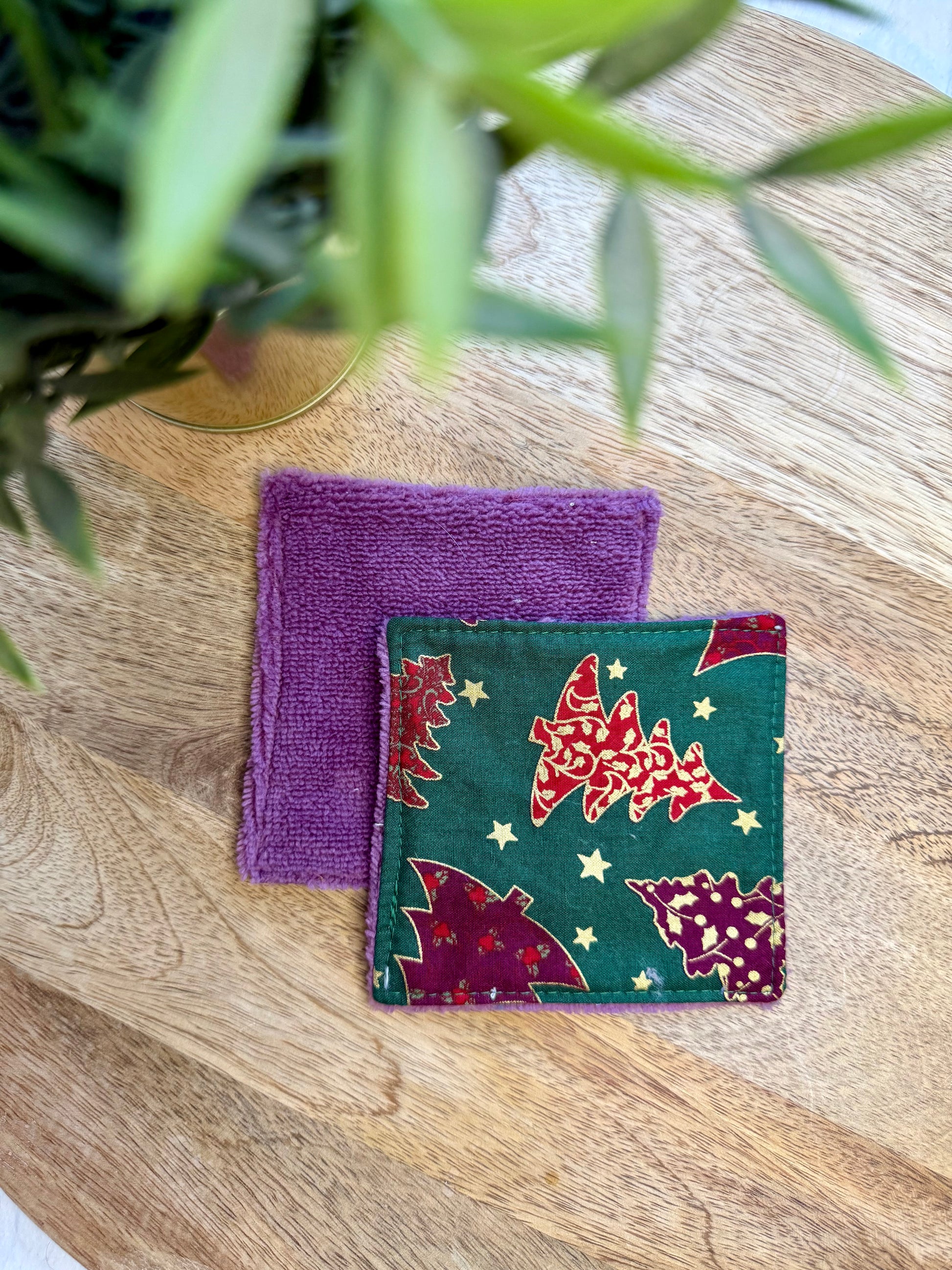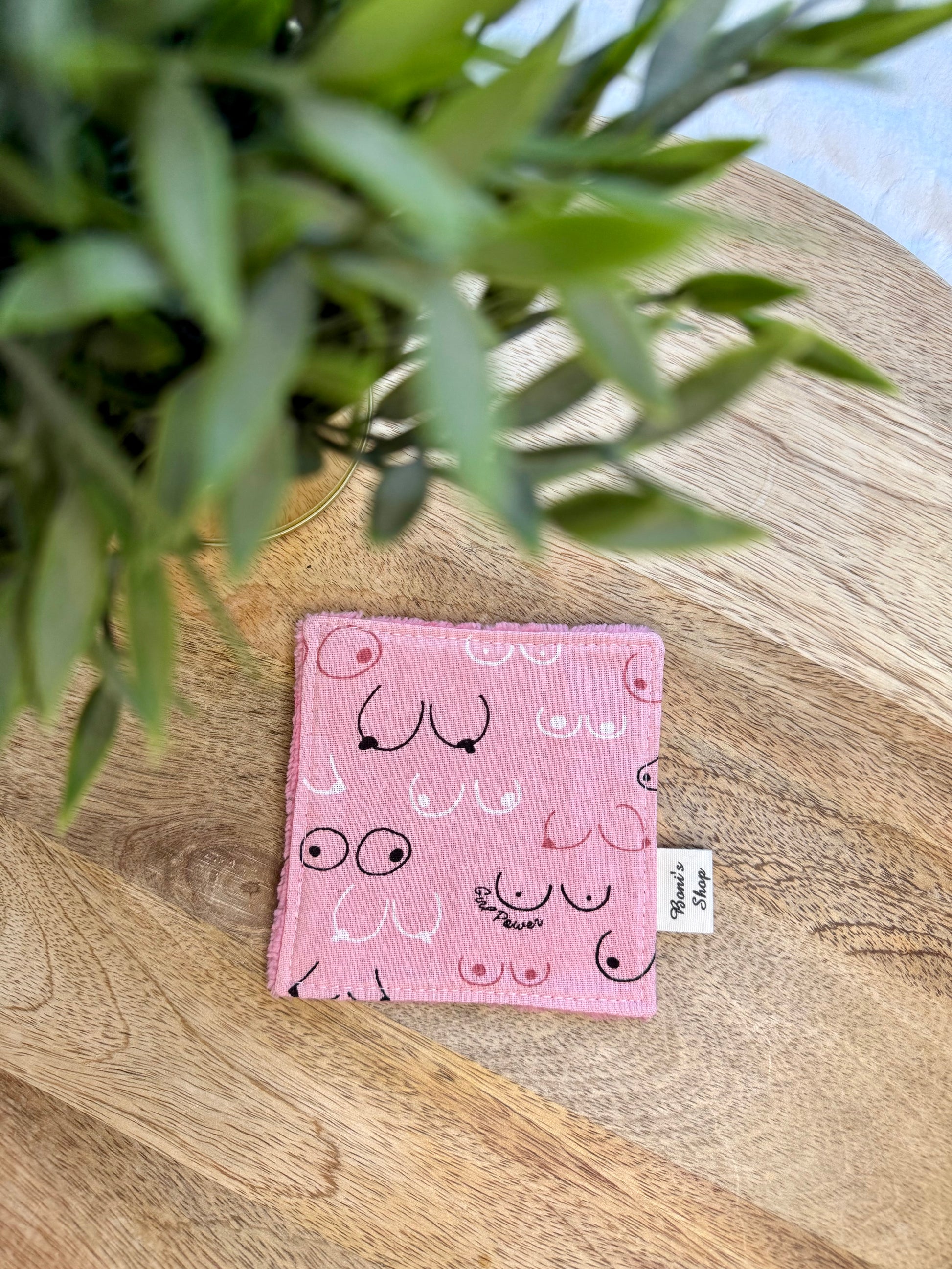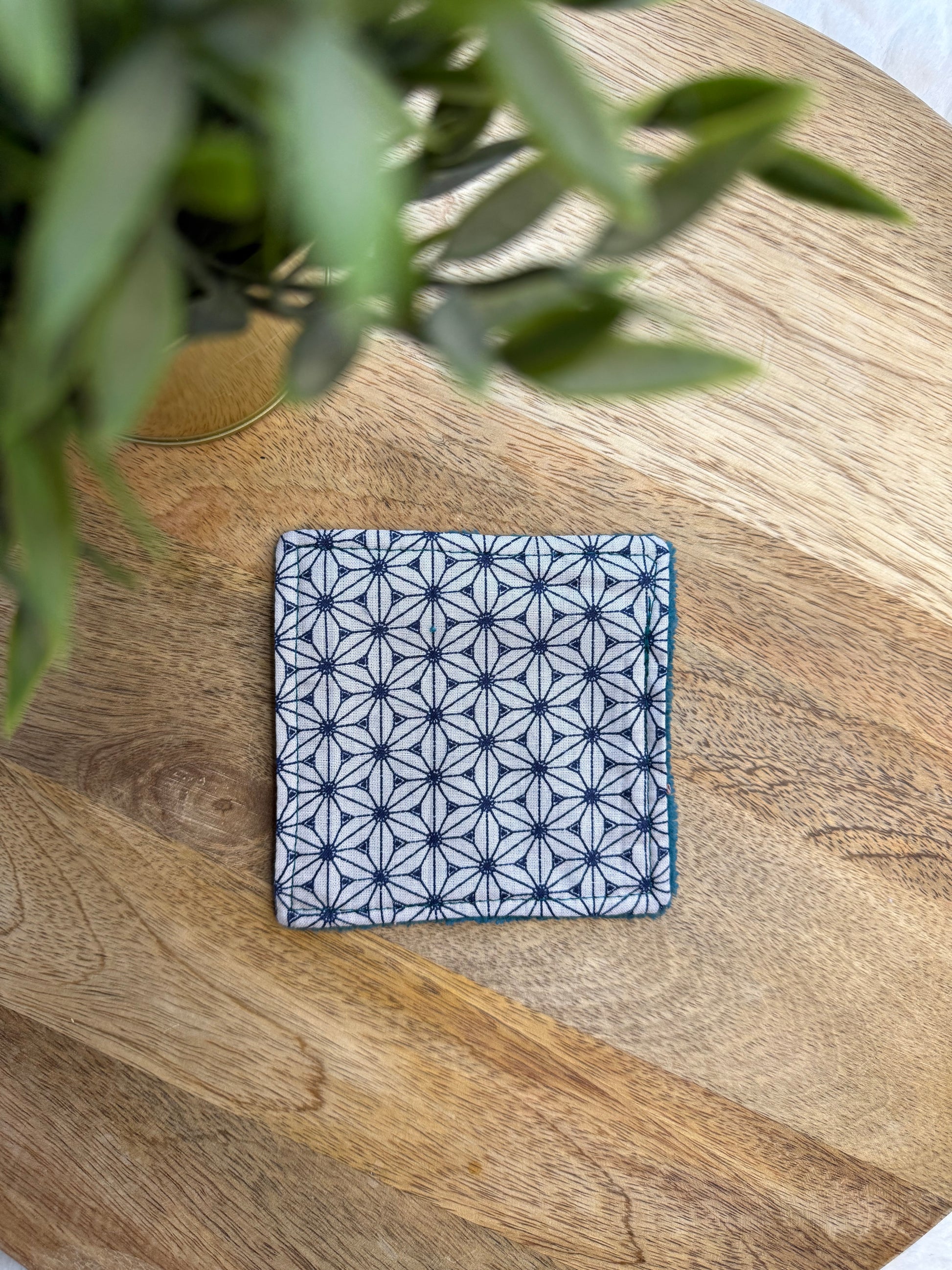 Les lingettes mesurent 11 cm x 11 cm environ. Elles sont constituées d'une face en tissu coton OEKO-TEX et d'une face en éponge bambou assortie au tissu coton.