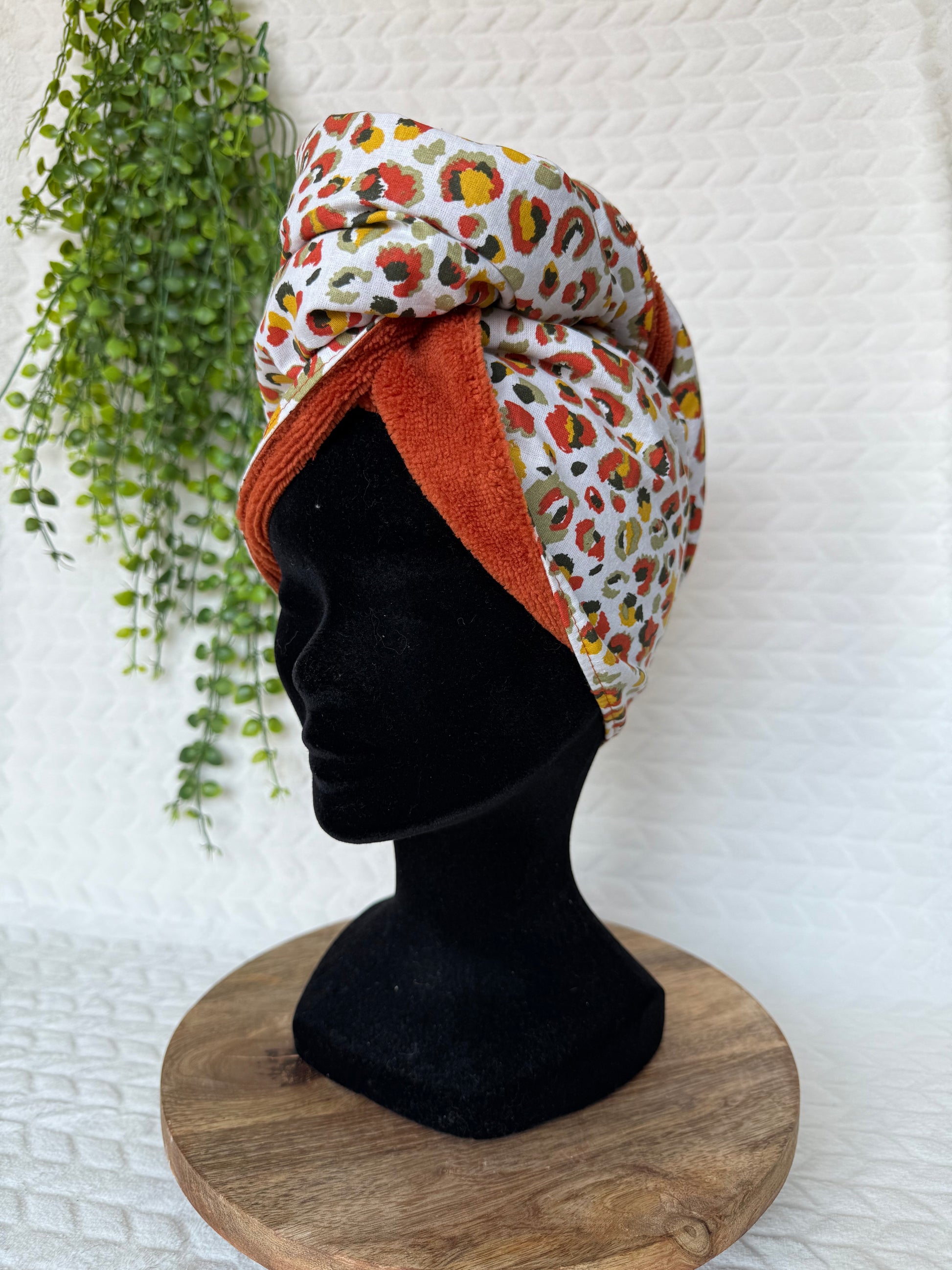 Offrez-vous le luxe du confort et de la praticité avec ce turban serviette à cheveux en coton à motif et éponge bambou !