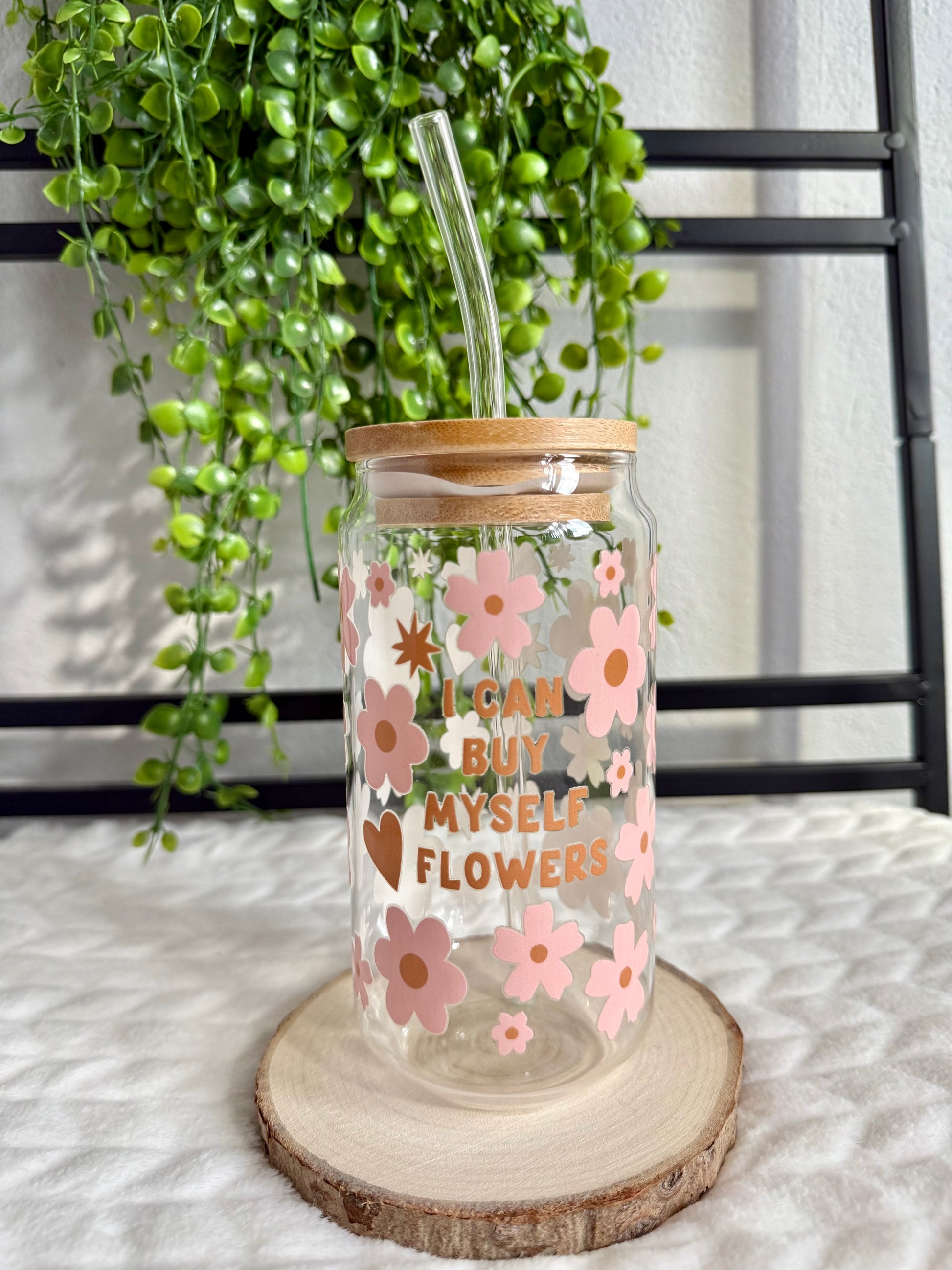 Accessoires inclus : couvercle en bambou naturel et paille en verre réutilisable.